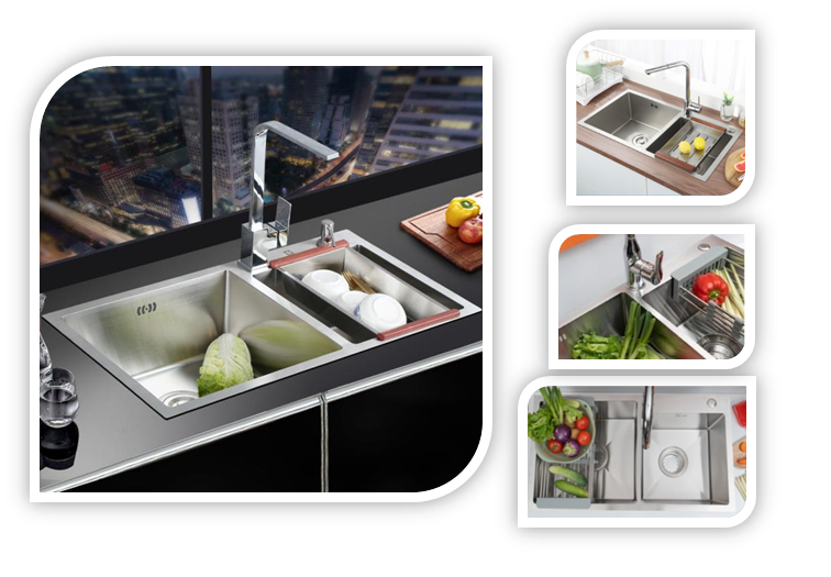 Dòng sản phẩm chế tạo bán thủ công . Mặt chậu dầy dặn,mối hàn kín và sâu, chậu chắc chắn bền bỉ với thời gian .Có thêm rổ inox có thể úp vật dụng nhà bếp và để khô ráo dau củ quả. Chậu có bộ ống xả nước thông minh , ngăn mùi hiệu quả, bộ lọc rác bằng inox. có lớp chống ồn bằng cao su và chống ngưng tụ đáy chậu, chậu có lỗ chờ lắp thêm vòi máy lọc nước hoặc ống đựng nước rửa bát